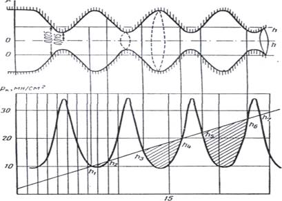 Кроме того, мениск, поднятый в четочном канале выше равновесной высоты, например под действием внешнего давления, не опустится до равновесного уровня, а будет оставаться в этом положении вследствие той же причины - изменения направления капиллярного давления в расширенных сечениях каналов. Эти положения отражены графически на рис.1. Следовательно, в каналах переменного сечения капиллярные силы имеют прерывистый характер.