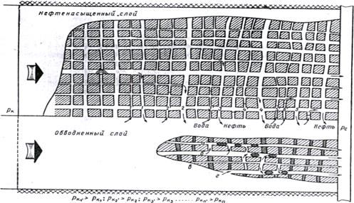 Опыт разработки нефтяных месторождений свидетельствует о том, что вследствие слоистой неоднородности продуктивных пластов происходит их послойное обводнение, в результате чего на контакте заводненных и нефтенасыщенных слоев создается резкий скачок насыщенности.