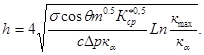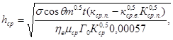 Остальные параметры кгар , Г0 , δср и ∆рк определяются по соотношениям (13), (11), (15), (18) и (19). Подставив их в (21) и приняв mв = mн = m/2, что следует из равенства суммарного расхода жидкости при противотоке нулю, получим выражение для глубины капиллярной пропитки: