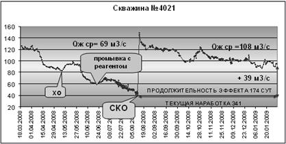 Рассмотрим эффективность технологии на примере восстановления производительности установки на СКВ 4021 (график 2)