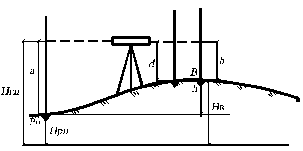 Нивелированием «из середины» снимают отсчет а, вычисляют горизонт инструмента и отсчет по рейке b: