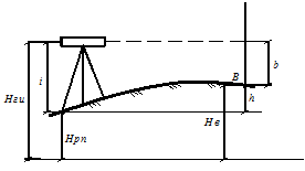 Затем рейку ставят на колышек и снимают отсчет bґ. Он должен быть меньше вычисленного значения. Колышки забивают слабыми ударами до тех пор, пока отсчет bґ не будет равен вычисленному значению b.