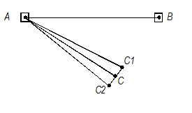 Действия выполняют при двух положениях вертикального круга теодолита, вынесенные углы закрепляют деревянными колышками С1 и С2 (рис. 14). Затем расстояние между ними делится пополам, закрепляется положение точки С, которая и определит окончательное положение угла ВАС.