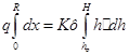 Изменив пределы интегрирования в выражении (9) по X от 0 до х, а по У от h0 до h К получим
