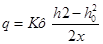 По формуле (11) можно рассчитать расход плоского грунтового потока. Подставив вместо радиуса влияния расстояние между сечениями, равное I , получим