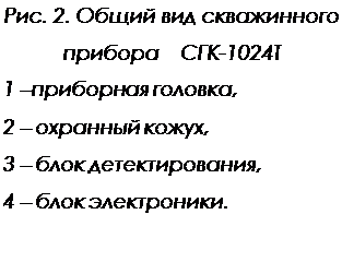 Аппаратура СГК-1024 предназначена для проведения спектрометрического гамма-каротажа естественной радиоактивности породы с получением массовых содержаний тория СTh , урана СU и калия СK . Аппаратура выпускается в обычном (120°С, 80 МПа, СГК-1024Т) и термобаростойком (175 °С, 140 МПа, СГК-1024Т-2Т) исполнениях. В зависимости от условий применения и требований к точности измерений допустимая скорость каротажа изменяется в пределах 50¸200 м/час.