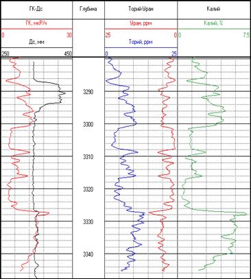 - поток гамма-излучения естественной активности пород на детекторе канала СГК (скоростей счета в энергетических окнах);