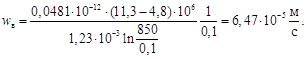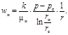Для определения закона фильтрации определим скорость фильтрации воды у скважины по формуле(2):