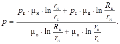 Давление на границе раздела жидкостей p найдем из условия равенства скоростей фильтрации нефти и воды на этой границе, для чего приравняем (1) и (3) при