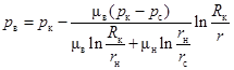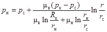 Распределение давления в водоносной и нефтеносной областях определяется по формулам (6) и (7).