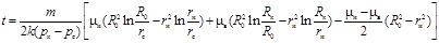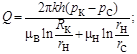 По формулам (5), (10) и (12) определяем давление на границе ВНК и изменении дебита от времени.