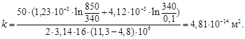 Рассчитаем коэффициент фильтрации по формуле (11) взяв значения из графика на рисунке 2: