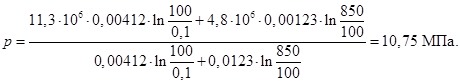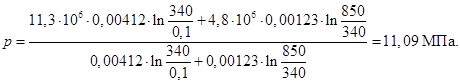 Для первых 10 м: R0 = 850 м; rн = 840 м: