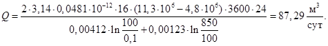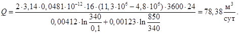 q – дебит скважины, определённый по графику на рисунке 11, q = 75 м3/сут.
