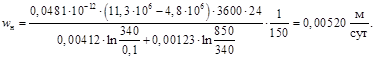 Распределение скоростей фильтрации определяем по формулам (8) и (9). При r = 150 м: