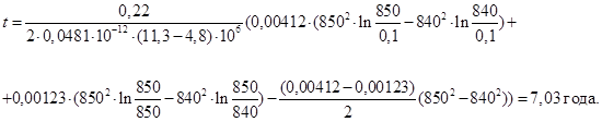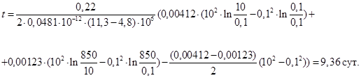 Определяем время вытеснения всей нефти водой по формуле (13):