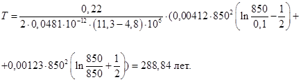 5. Время вытеснения всей нефти водой T найдем, подставив в уравнение (12)