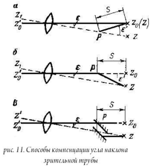 Наибольшее распространение получили маятниковые компенсаторы. Компенсировать угол наклона ε зрительной трубы можно различными способами: