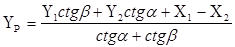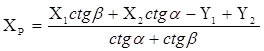 | обозначения | углы | X | ctg α, ctg β | Y | |||