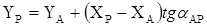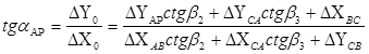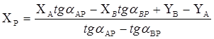 α, β – горизонтальные углы, измеренные на исходных пунктах.