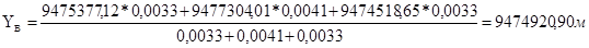 Уравнивание ходов полигонометрии второго разряда, образующих одну узловую точку дало вероятнейшее значения координат по данным всех ходов: Хв =2346519,75 м, Yв =9474920,90 м.