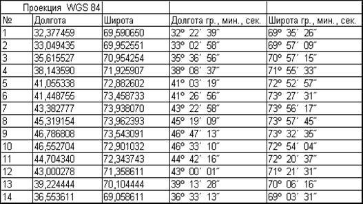 Координаты лицензионного участка ШГКМ (Система координат WGS 84):