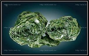 Тальковые сланцы (рис.3) - светло-зеленовато-серые породы, состоящие в основном из листочков и пластинок талька. Чистые тальковые сланцы называются тальковым камнем, последний широко применяется как хороший огнеупорный и кислотоупорный материал. Структура кристаллическая (лепидобластовая), текстура сланцеватая. Кроме талька могут присутствовать кварц, хлорит, актинолит. Месторождения его известны на Урале.
