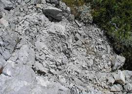 У подножия разрушающихся утёсов, отвалившиеся от них обломки накапливаются, образуя на склонах обширные осыпи , часто легко подвижные и трудно проходимые, состоящие из крупных глыб или из щебня, ползущего под ногами вниз. На плоской поверхности горных вершин выходы твёрдых пород распадаются при выветривании на отдельные части, превращаясь в сплошную россыпь глыб, торчащих в разные стороны. Эти россыпи особенно часты в Сибири и Арктике, где они образуются при совместной работе сильных морозов и влаги туманов, дождей и тающего снега. Но и в тёплом климате вершины гор, поднимающиеся над линией постоянного снега, где климат почти арктический, разрушаются быстро и дают обильные осыпи и россыпи. [3, стр.16-23]
