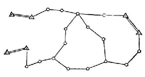 При значительных размерах территории, на которой должна быть создана опорная геодезическая сеть, прокладываются взаимно пересекающиеся полигонометрические ходы, образующие полигонометрическую сеть (рисунок 4).