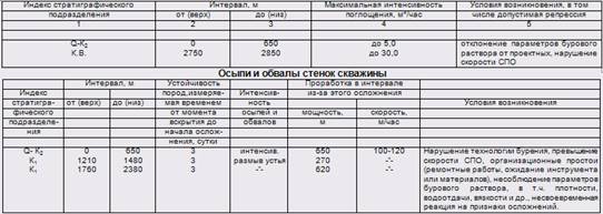 Таблица 2.1Стратиграфический разрез скважины, элементы залегания и коэффициент кавернозности пластов