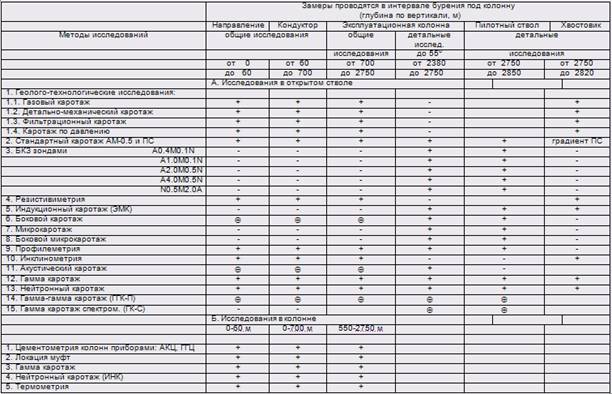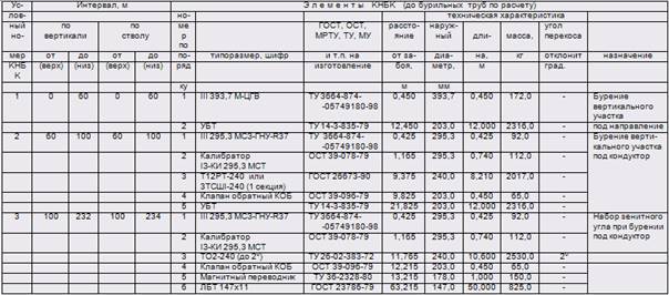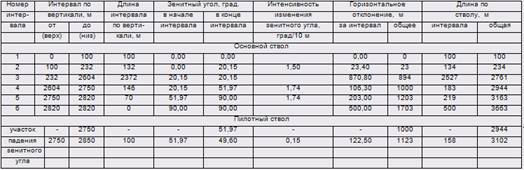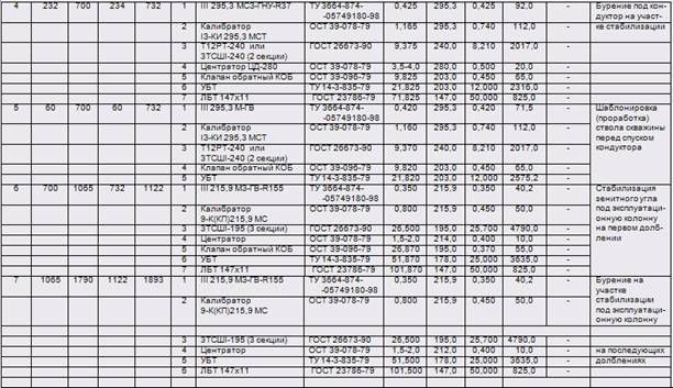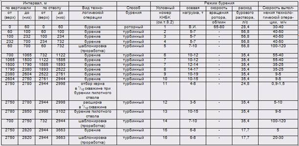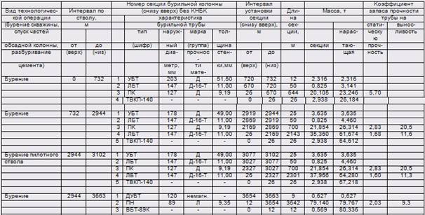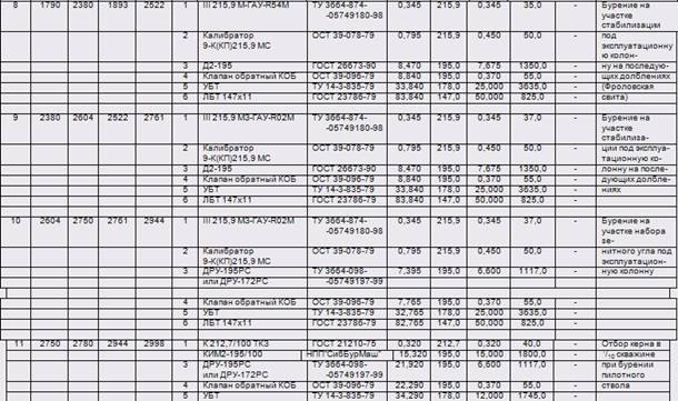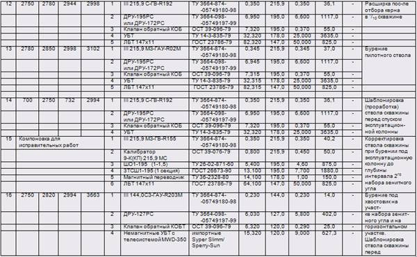 | 4 | Пилотный ствол | 215,9 | 2750-2850 | 2944-3102 | - | - |