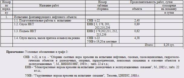 Таблица 3.12 Продолжительность испытания скважины на продуктивность