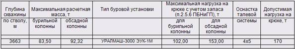 - Нагрузка на крюке буровой установки (графы 5, 6) не должна превышать: