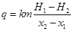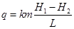 Для умов напірної нерівномірної фільтрації витрата потоку визначається, виходячи зі зміни напірного градієнта, який можна виразити: