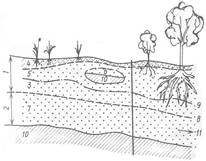 Почвенный сток возникает лишь при сильных дождях и снеготаянии, если в почве есть наклонные слабопроницаемые прослои и если часть почвы насыщается водой. Мощность слоя с почвенной водой обычно колеблется в пределах от нескольких см до 1-1,5 м. Инфильтрующиеся вертикально вниз под действием силы тяжести воды, встречая на своём пути относительные водоупоры, образуют верховодку, т.е. временные сезонные скопления подземных вод (мощность их составляет 0,4-1 м, редко до 2-5 м).