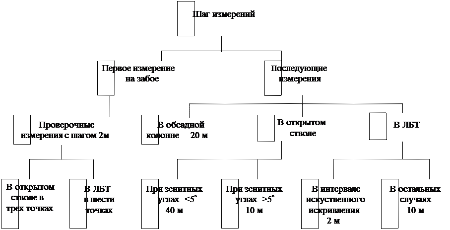 Шаг измерений инклинометром в различных условиях показан на рис.6.