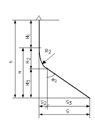 Величины вертикальных проекций участков ствола определяются по формуле