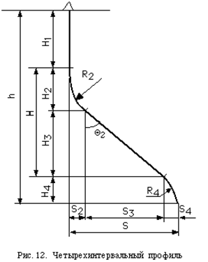 Для построения плана и профиля скважины предварительно определяются вертикальные h и горизонтальные S проекции участков ствола между точками замеров зенитного Q и азимутального a углов скважины. При построении горизонтальной проекции используется следующая формула