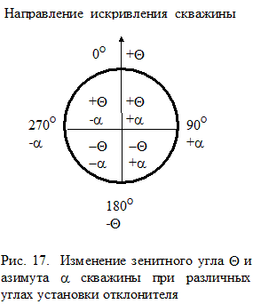 При выполаживании скважины происходит увеличение зенитного угла (бурение с подъемом угла), а при выкручивании - уменьшение (бурение с падением угла). При искривлении скважины влево азимут ее уменьшается, а вправо - увеличивается.