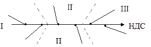 Во вторую очередь - скважины, горизонтальные проекции которых образуют с НДС угол, равный 60-120О и 240-300О (II сектор), и вертикальные скважины. В последнюю очередь бурятся скважины, для которых указанный угол ограничен секторами 0-60О и 300-360О (III сектор), причем сначала скважины с меньшими зенитными углами.