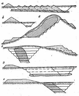 Рисунок 3.1 - Рельеф, образующийся при открытой разработке месторождений различного типа
