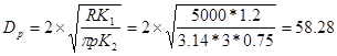 Округляем расчетный диаметр до стандартного значения: Dp =63 мм.