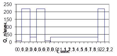 По полученным значениям строим циклограммы подачи масла, сначала отдельно для каждого гидродвигателя, затем суммарную.
