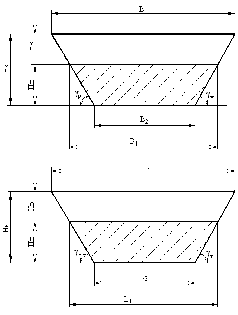 В2 = В – Нк · ( ctg γр + ctg γн ), м (1.3)