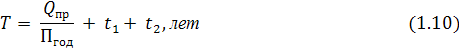 где t 1 , t 2 – соответственно время на развитие и затухание работ (1,5 – 2 года);