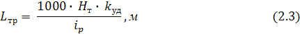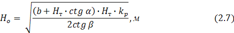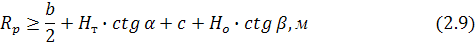 L 2 = L – 2 H к · ctg γт , м (1.5)
