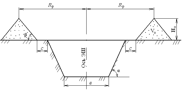 В1 = В – Нв · ( ctg γр + ctg γн ), м (1.2)