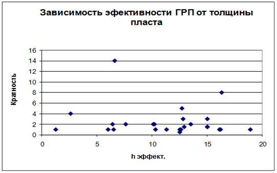 Анализ также показывает, что эффективность ГРП, выполненных в краевых зонах залежи, значительно выше, чем в ее центральной части .