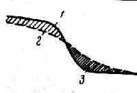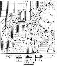 Такой низкий участок долины, сложенный аллювием, представляет пойму реки - часть долины, возвышающуюся над руслом, называемую также пойменной, луговой или заливной террасой. Поперечный профиль долины приобретает плоскодонную, или ящикообразную форму. Излучины, развиваясь, приобретают значительную кривизну, образуют серию петель, разделенных узкими перешейками (рис. 6.7). Местами происходит прорыв такого перешейка, и река на таких участках спрямляет свое русло. Осадки, накапливающиеся рядом с главным спрямленным руслом у концов покинутой излучины, заполняют оба ее конца, и она превращается в замкнутое озеро.