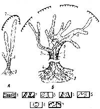 По мере продвижения вершины растущего оврага в глубь водораздельного плато на его склонах образуются промоины или рытвины, которые также превращаются в овраги. Такие ответвления, или отвержки, от главного оврага растут попятно, следуя по течению сливающихся струй воды, и по мере развития они также ветвятся. В результате возникает сложная ветвящаяся овражная система, расчленяющая местами не только склоны, но и обширные водораздельные пространства (рис. 6.2).